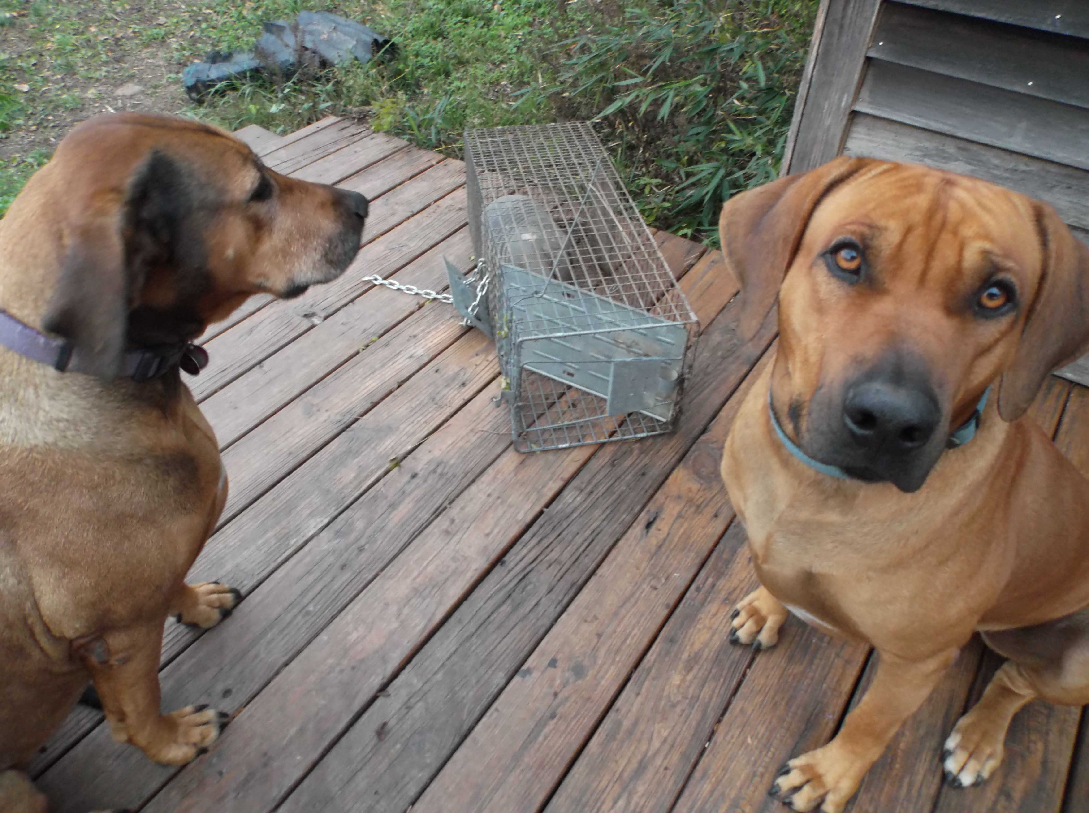 I think my excitement got the dogs all excited. Perhaps even my whispers of “what is it?” That very question, when asked in a particular manner, will get them into hunting mode and they’ll immediately start prowling perimeters for an unseen delicacy. Sure, I’m an instigator. The dogs just kinda simmered down and awkwardly sniffed at it through the cage. No fun in trapped prey.
