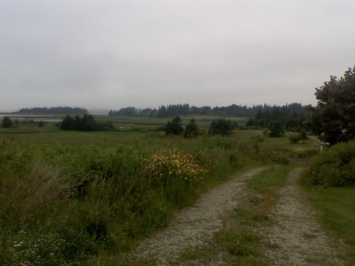 Where the road is just a pair of ruts through the grass.